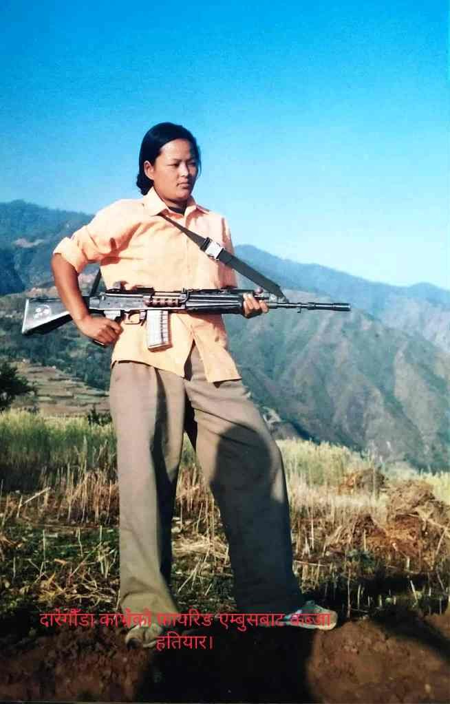 कमान्डर क. सरिता दोसि म्हुक्गिला लागि मोर्चाबन्दी युद्धरि वाङ्मा स्ह्योरि ब्लाप्बा, फोङ्सार्बा लि थेन कासे बाम्बा ल्हुइ थोसिमाम ह्रोलाबारि दोगाजि । ङानि थेरि मुबा जामेकोलाकादेसे खालाइसे पाइन्ट, खालाइसे पेन्टी पेन्सिमाम कट्टनला प्याड स्होसिमाम पिन्जि । कमान्डर कमरेड सरितासे बिबाकेन मुबा, ‘तिल्मा रेहेन्से म्हुक्गिला लडाइँरि या गिसे हतियारला च्याम्बररि म्यागजिन पोबा थेन स्यादो यासे प्याड पोसिमाम लड्तिजि ।’