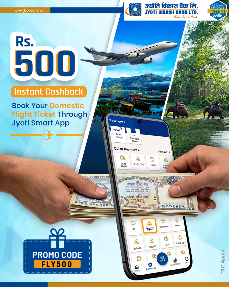 याम्बु ४ तापाग्रेन । ज्योति विकास बैंकसे ह्राङ्ला ग्राहकदाजुगुदा साप्तोन काप्सि पिन्बा दोन्तासे बैंकला मोबाइल बैंकिङ एप, ज्योति स्मार्टग्याम हवाइ टिकट ग्लुमा ग्यार्जा ङ्हा क्यासब्याक ...