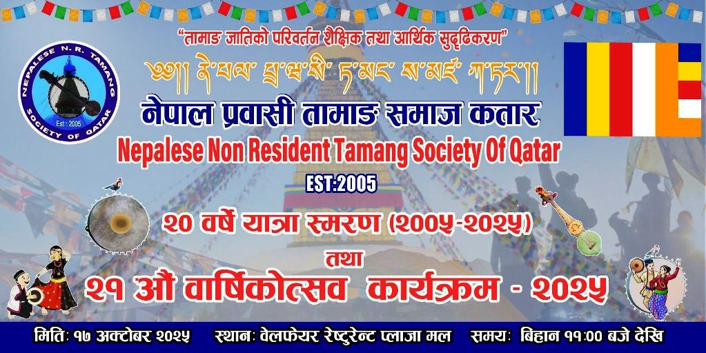 कतार । नेपाल प्रवासी तामाङ समाज कतारसे १७ अक्टोबर २०२५ रि ह्राङ्ला २१ छा दिङ्कि काप्तोन गेताङ स्हेङ्बा मुला ।