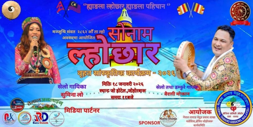 मलेसिया । नेपाल तामाङ घेदुङ प्रवास शाखा क्षेत्रीय जोहरबरु, मलेसियासे सन् २०२६ ला १८ जनवरीकुनु सोनाम ल्होछार दाङ्सेला ग्रा जारी लाबा मुला ।