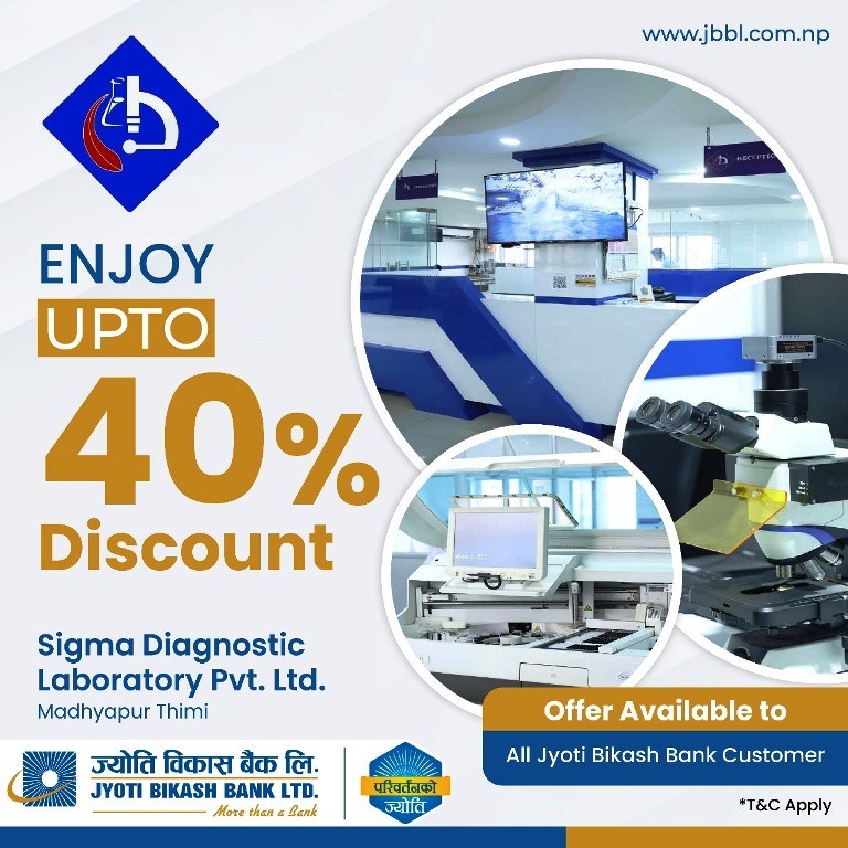 ज्योति विकास बैंकला ग्राहकदा sigma diangostic laboratory रि विशेष छुट