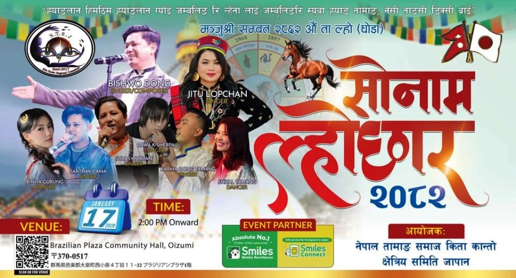 जापान । नेपाल तामाङ समाज किता कान्तो क्षेत्रीय दाछोक, जापानसे १७ जनवरी २०२६ कुनु सोनाम ल्होछार दाङ्सेला ग्रादाङ पिन्बा मुला ।
