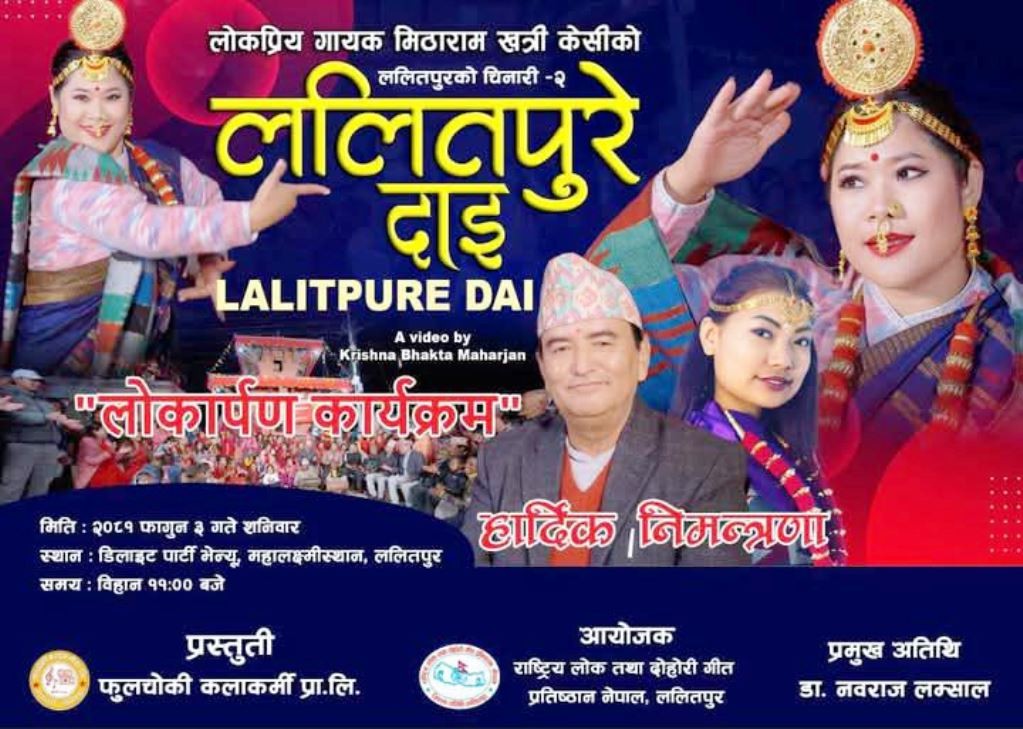ललितपुर । लोकप्रिय काइपा मिठाराम खत्री केसीला ‘ललितपुरे दाइ’ व्हाइला भिडियो ठ्वाङ्सेन बेने ३ गते कामरेकुनु ताबाकेन मुला ।