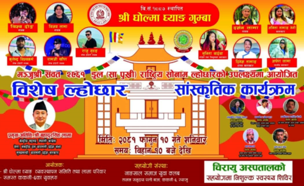 घोल्मा घ्याङसे बेने (फागुन) १० गते ल्होछारला दुइसाङरि सांस्कृतिक गेताङ लाबाकेन