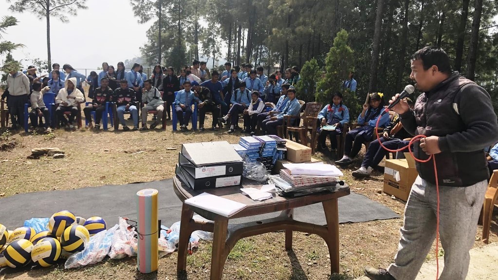 गेताङरि श्री मंगलादेबि मा.बि थेन दुधेदेबि माबिला लोप्बोनजुगुदा शैक्षिक सामाग्री (कपि, डट्पेन, क्यालकुलेटर, ज्यमितीय बक्स) बोलाबा मुबा ।
